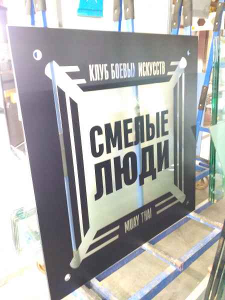 Было предложено простое и функциональное решение изготовления с последующим монтажем логотипа с использованием безопасного закаленного стекла 10мм с нанесением логотипа.