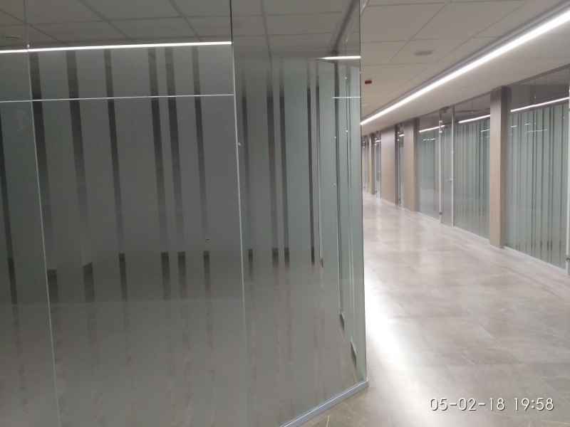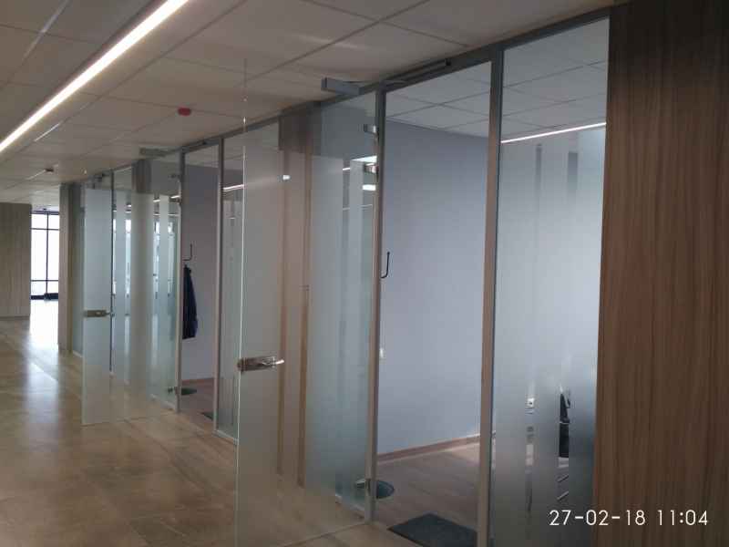На данном объекте было установлено более 3500 м2 цельностеклянных перегородок, с гарантией на продукцию 1 год.