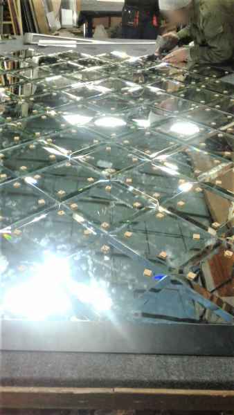 Задача: Изготовить Цельностеклянную перегородку GLASS без примыкания к потолку, изготовить Пано из зеркал с фацетом, Закрыть стену негабаритным цельным зеркалом.